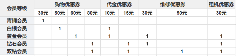 黄金及以上等级的会员,每个季度获得2张价值15元的租机优惠券